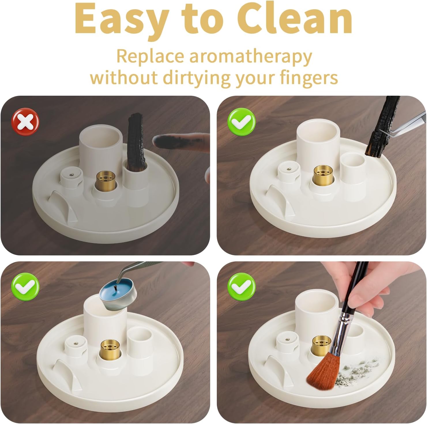 【Easy to Clean】This incense burner holder, crafted from high-quality ceramic, combines heat resistance, easy cleaning and beautiful aesthetics, You can simply sweep the ash with the brush included in the package to maintain its cleanliness and aesthetic appeal.